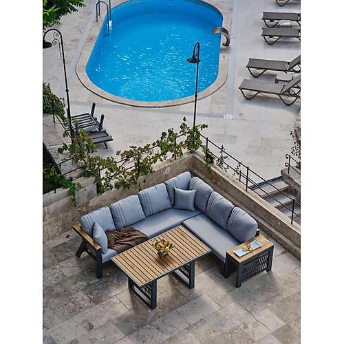 Fiyata dahil parçalar; 1 Adet Köşe Takımı, 1 Adet Yemek Masası Genel Ürün Özellikleri ; Rattan ürünlerde kullanılan çiviler geri atma , çıkma yapmaması için tırtıklı ve dişli seçilmektedir. Alüminyum ürünlerde dayanıklı ip ve elektrostatik toz boya kullanılmakta. Ahşap kısımlar iroko ağacıdır. * Paslanmaz * Soğuğa ve sıcağa dayanıklı * Darbelere karşı dayanıklı * Güçlendirilmiş alüminyum şase * Düşük yoğunluklu polietilen * Ultraviyole koruma * Leke tutmaz silinebilir kumaş (Yıkanabilir) * Kötü hava koşullarına dayanıklı * Haşere ve mantar tutmaz * Tamamen yıkanabilir * Geri dönüştürülebilir
