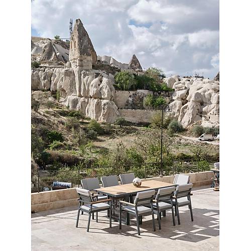 Fiyata dahil parçalar; 1 Adet Yemek Masası, 6 Adet Sandalye – 1 Adet Yemek Masası, 8 Sandalye fiyatı 76.990 TL. Genel Ürün Özellikleri ; Rattan ürünlerde kullanılan çiviler geri atma , çıkma yapmaması için tırtıklı ve dişli seçilmektedir. Alüminyum ürünlerde dayanıklı ip ve elektrostatik toz boya kullanılmakta. Ahşap kısımlar iroko ağacıdır. * Paslanmaz * Soğuğa ve sıcağa dayanıklı * Darbelere karşı dayanıklı * Güçlendirilmiş alüminyum şase * Düşük yoğunluklu polietilen * Ultraviyole koruma * Leke tutmaz silinebilir kumaş (Yıkanabilir) * Kötü hava koşullarına dayanıklı * Haşere ve mantar tutmaz * Tamamen yıkanabilir * Geri dönüştürülebilir